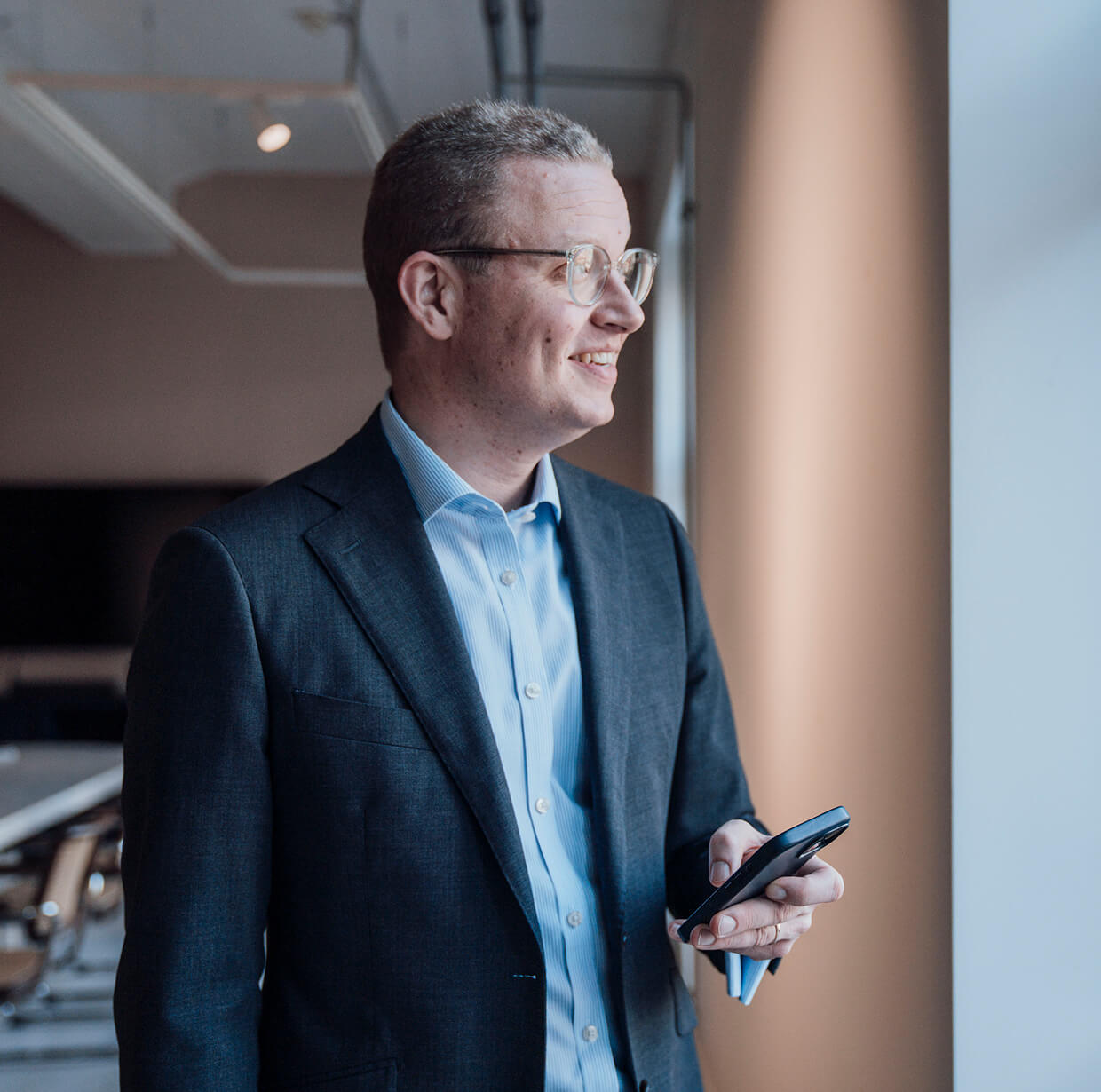 Berater für Steueroptimierung und Holdingstrukturen im Mittelstand mit Smartphone